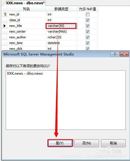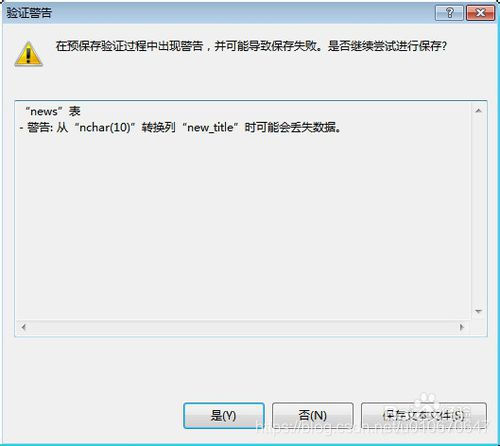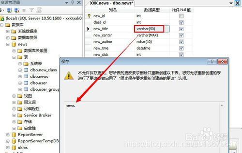 3.修改了数据库的表名和列名,点击【保存】之后弹出消息框,不能保存修改