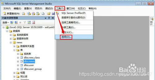 1.点击Sql Server2008或其他的SSMS菜单【工具】【选项】